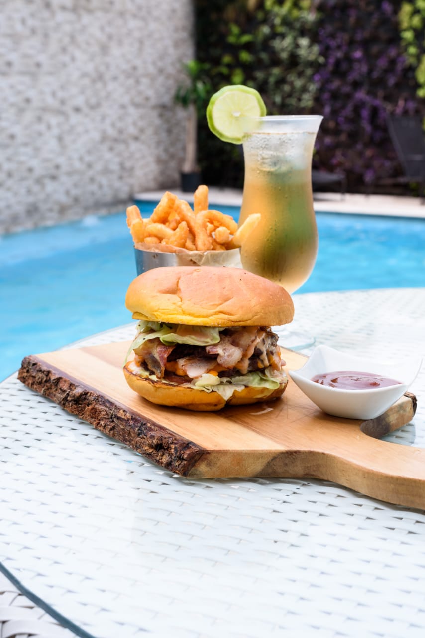 Deliciosa Hamburguesa de la casa, con ingredientes que te harán sentir la variedad de sabores.